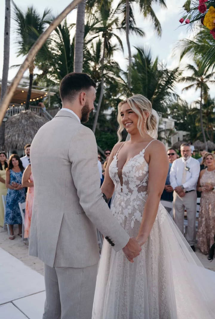 Somewhere between the ocean and shore is where you will find our Jenica wedding dress.