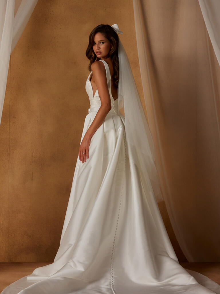 Created to pair with the Navy wedding dress, it can also elevate any wedding dress with a polished, romantic finish.