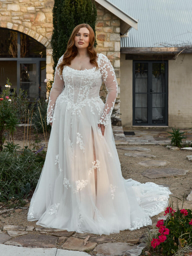 Style the dress with the detachable sleeves for versatility, and an additional look on your wedding day.
