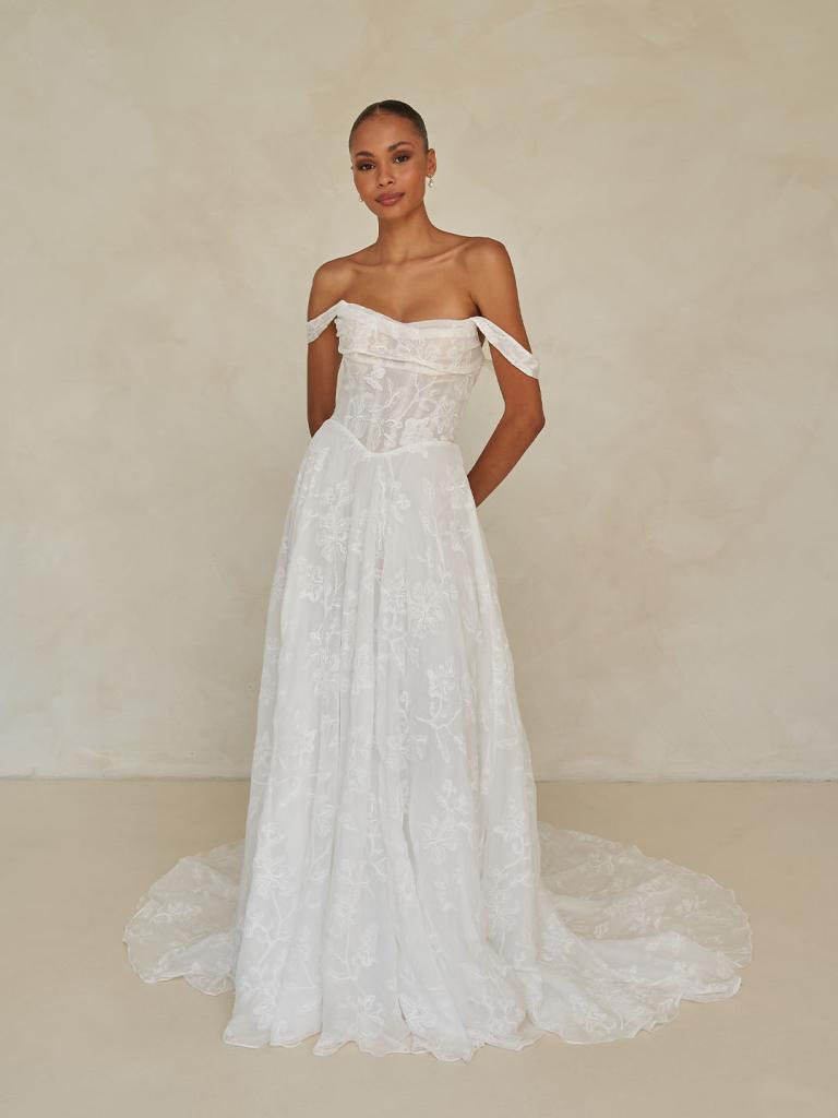 A fresh interpretation of timeless romance. The Wilder wedding dress blends classic charm with modern elegance, for the bride who seeks both softness and style.