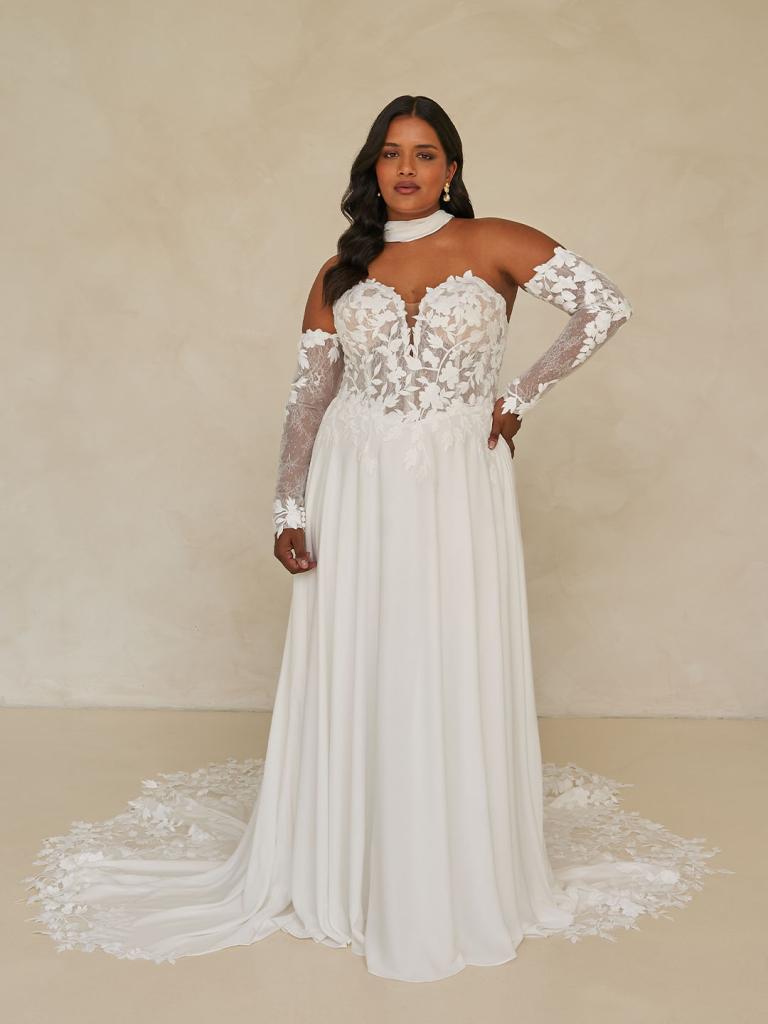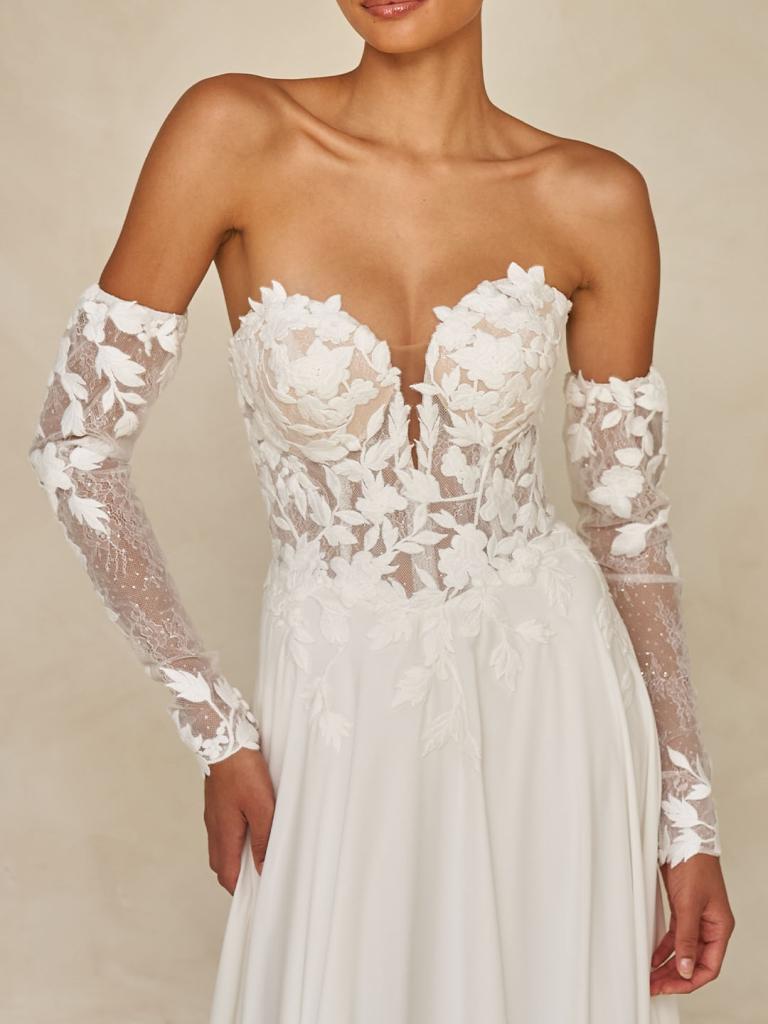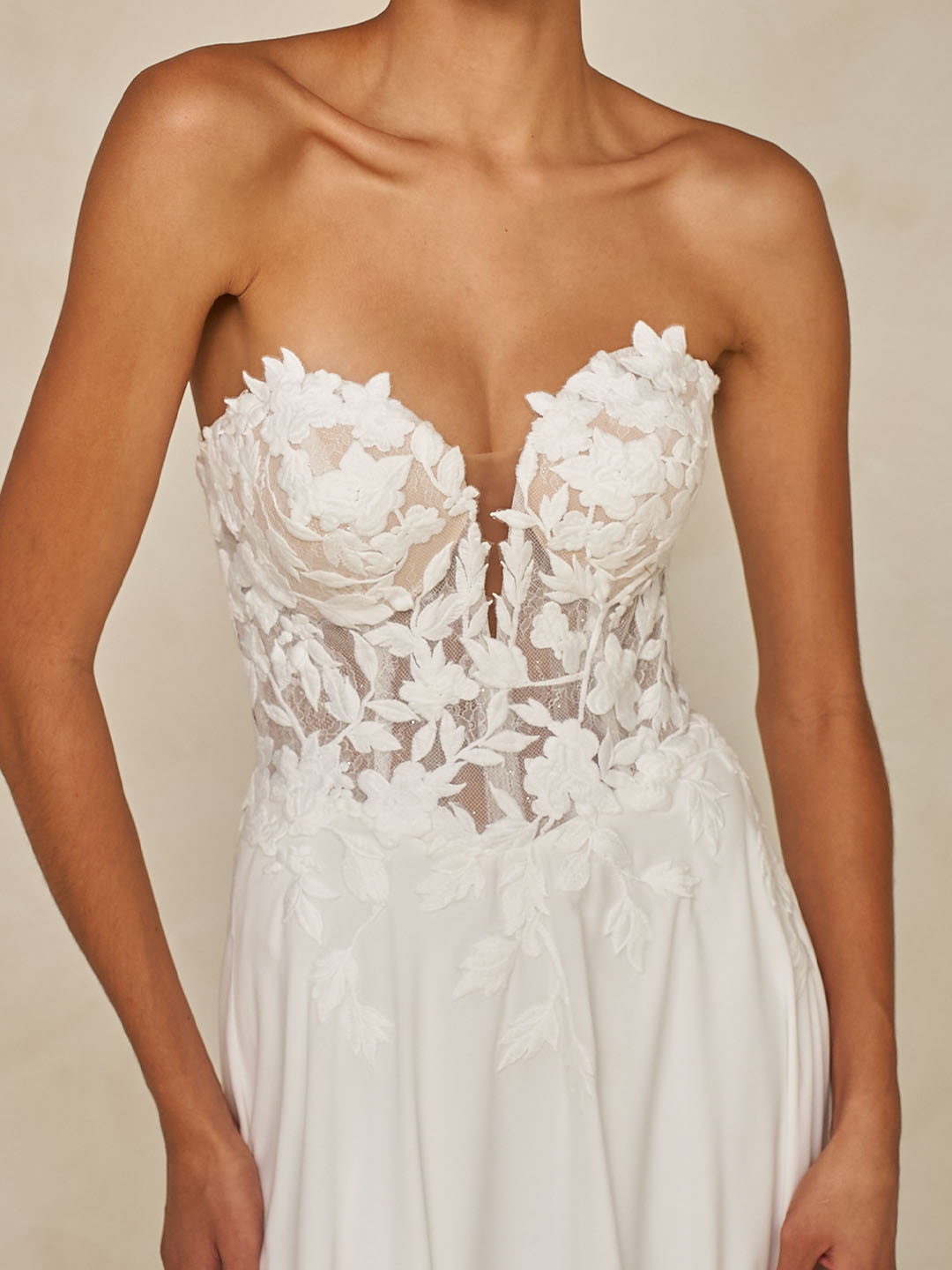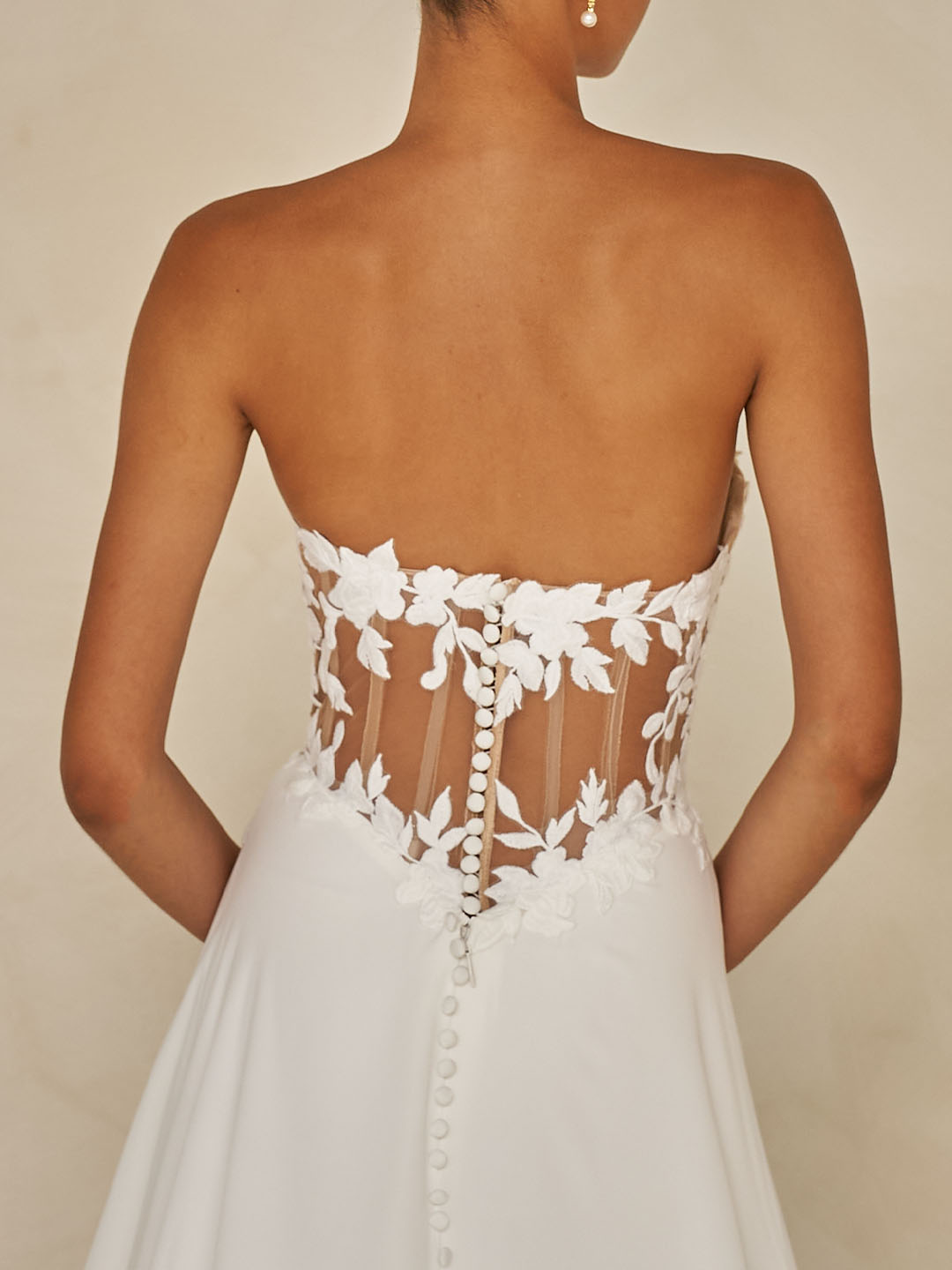 A timeless silhouette reimagined for today’s bride—light, expressive, and beautifully composed.